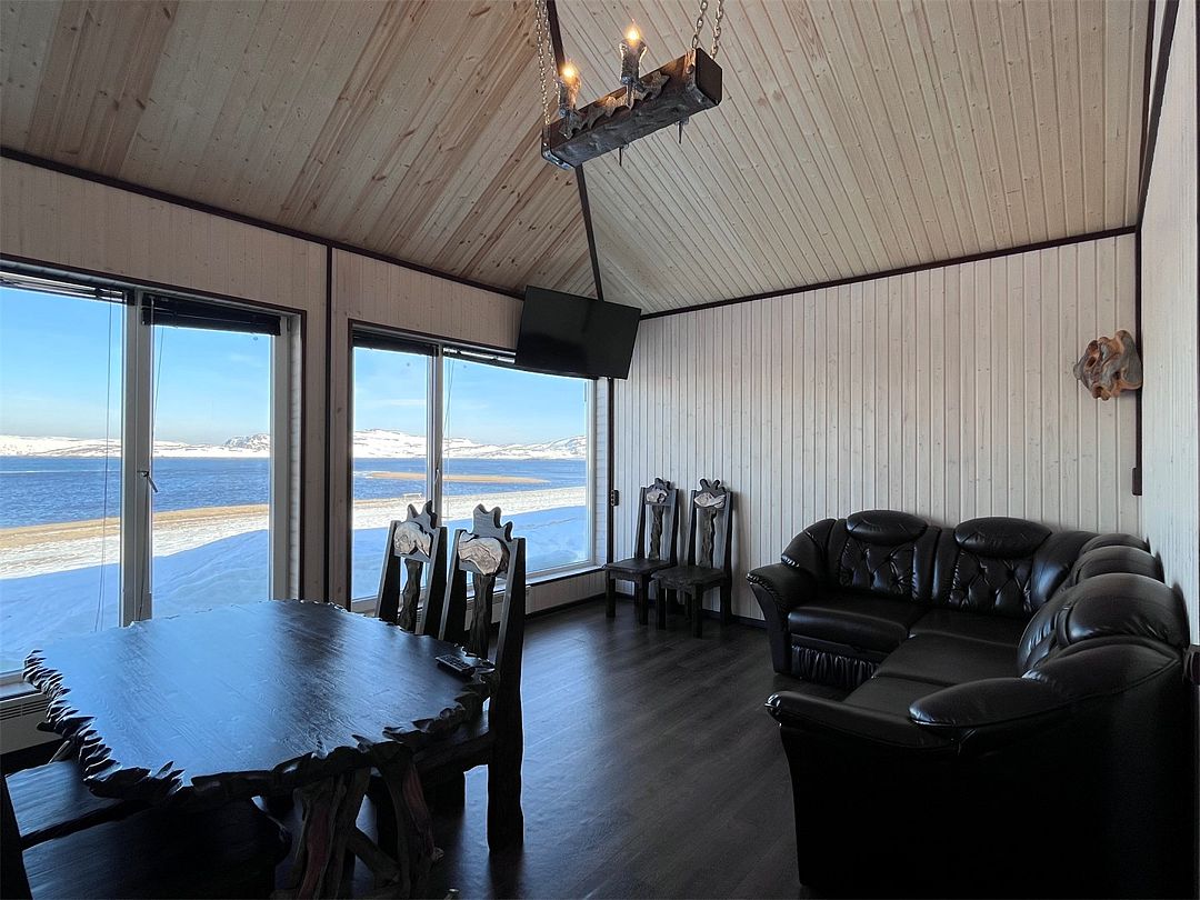 Пространство для жизни и вдохновения! Просторный трёхкомнатный дом с панорамным остеклением. Погрузитесь в магию Севера в новом доме на берегу Баренцева моря. Панорамные виды на бескрайние просторы и песчаный пляж создают ощущение полного единения с природой. Уникальная локация позволяет просыпаться под шум прибоя, встречать незабываемые рассветы и наблюдать за танцем северного сияния прямо из дома. Две спальни: - Уютные помещения с панорамными окнами - В каждой: две односпальные кровати - Затемняющие шторы blackout для комфортного отдыха Гостиная - Интегрированная зона отдыха и кухни - Стильный кожаный диван (дополнительное спальное место) - Обеденный стол на 6 персон - Телевизор для вечернего досуга - Панорамный вид на море Кухня - Полностью оборудованная зона с плитой и вытяжкой - Микроволновая печь, холодильник, чайник - Специальная чайная станция - Полный комплект посуды Комфорт - Климат-контроль (сплит-система) - Современный санузел с душевой кабиной - Предоставляется фен, косметические средства и полотенца Каждая деталь создана для того, чтобы ваш отдых стал совершенным — от продуманного интерьера до величественных видов за окном.Услуги и удобства