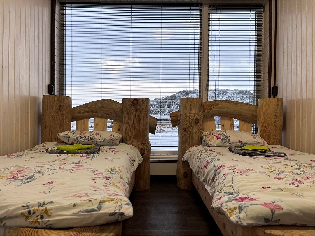 Уютный двухкомнатный дом на первой линии в Териберке с видом на Баренцево море. Идеален для пары или компании до 4 гостей. Спальня с двумя односпальными кроватями и окном на море. В гостиной — односпальная кровать и раскладной диван, мини-кухня (холодильник, микроволновка, чайник, посуда), телевизор и электрокамин. Два окна: на море и во двор. Ванная — душ, умывальник, зеркальный шкаф, фен, полотенца. Комфорт у самого края земли!Услуги и удобства