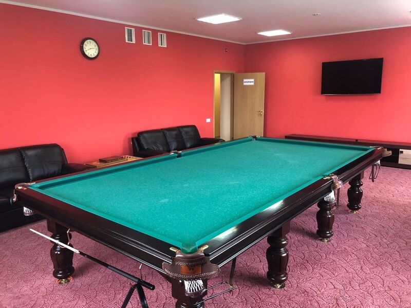 Любителей игры в бильярд ждет приятный сюрприз — прекрасный стол и все необходимое оборудование для русского бильярда.