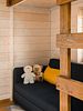 Банный дом состоит из спальни, кухни-гостиной и санузла с душевой: