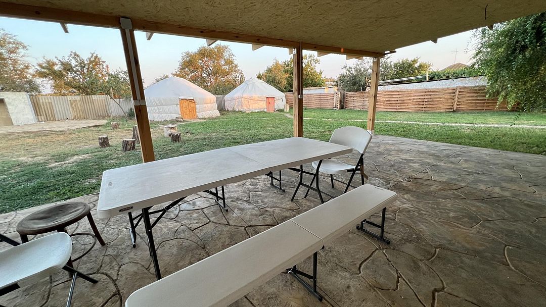 Глэмпинг «Калмыцкий дворик Сансара», словно оазис покоя в сердце тихого пригорода Элисты, приглашает гостей в мир уюта и гармонии. Юрты, окруженные зеленью, становятся не просто местом ночлега, а настоящим домом вдали от городской суеты. В каждой юрте, обставленной с вниманием к деталям, гостей ждут просторные кровати, уютные душевые и тщательно подобранные банные принадлежности, создающие атмосферу домашнего тепла.