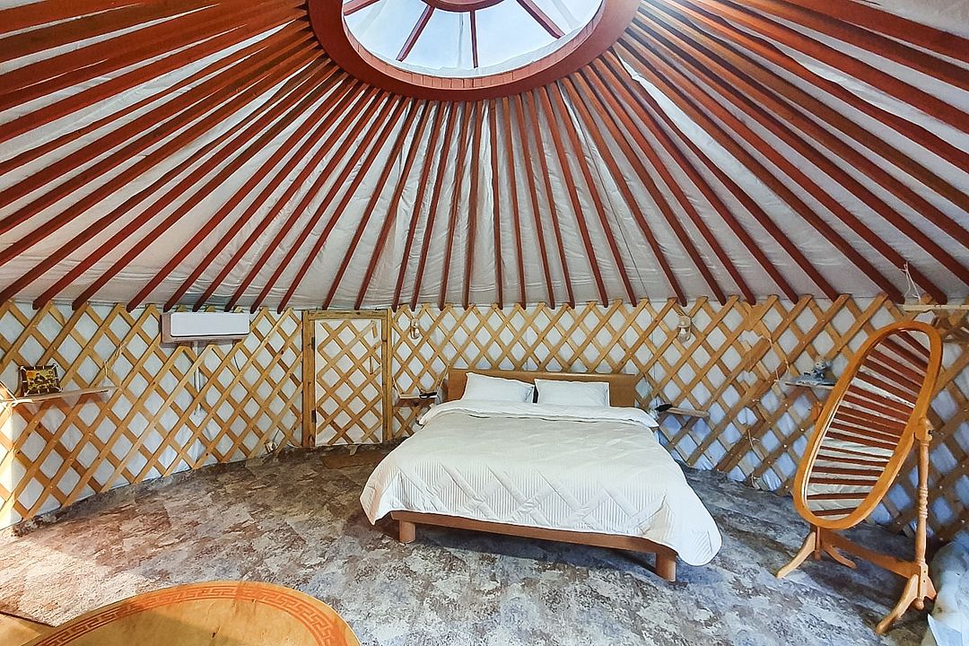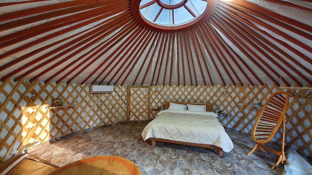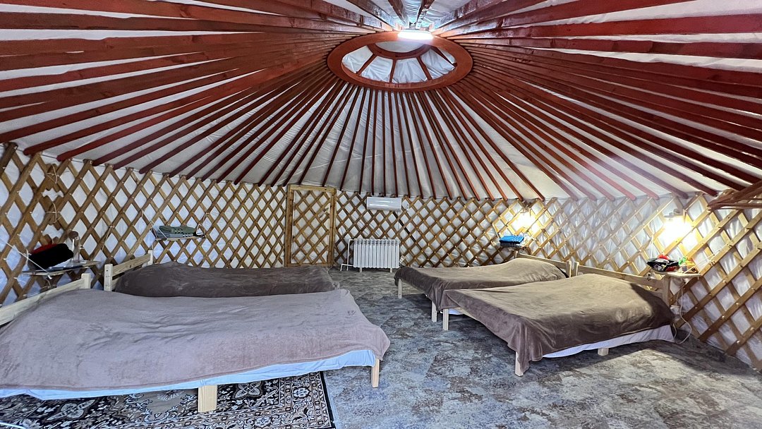 Калмыцкие юрты с комфортом. Двухспальная кровать + дополнительные кровати по договоренности, на территории место для отдыха, мангал, костровая зона, тандыр. Туалет, душ и раковина в номере. Имеется отопление, теплый пол, кондиционер.