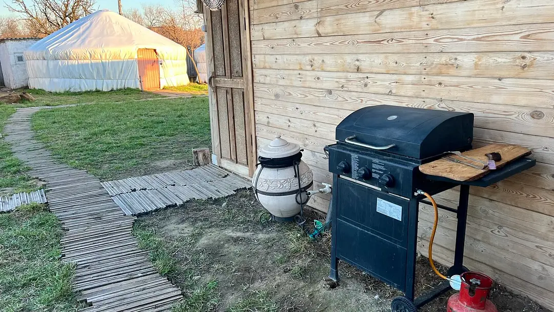 В глэмпинге «Калмыцкий дворик Сансара» гостей встречает просторная и полностью оборудованная кухня, где каждый может приготовить свои кулинарные шедевры. Здесь есть все необходимое: холодильник, плита, микроволновая печь и удобные столы для трапез.