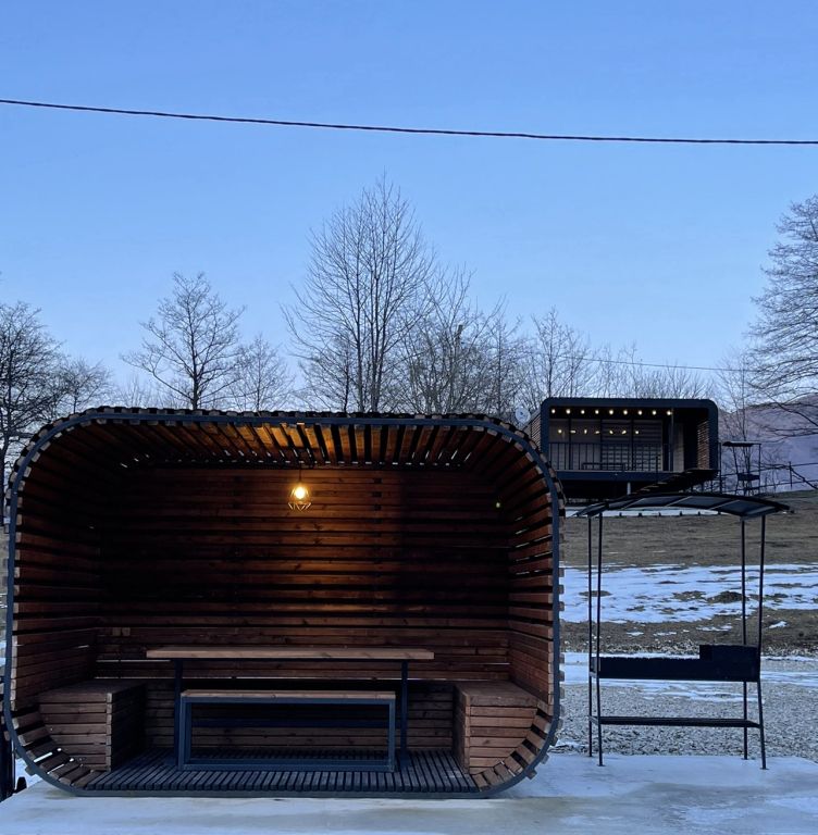 Гостям предоставляется возможность снять в аренду беседку с мангалом и арендовать самовар и прочие принадлежности для барбекю, такие как чугунная сетка для стейков, шампура для шашлыка, казан, сетка дров и уголь.