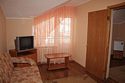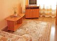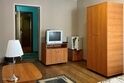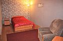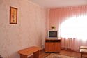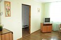 - В однокомнатном номере: двуспальная кровать, прикроватная тумба, платяной шкаф, телевизор, холодильник.