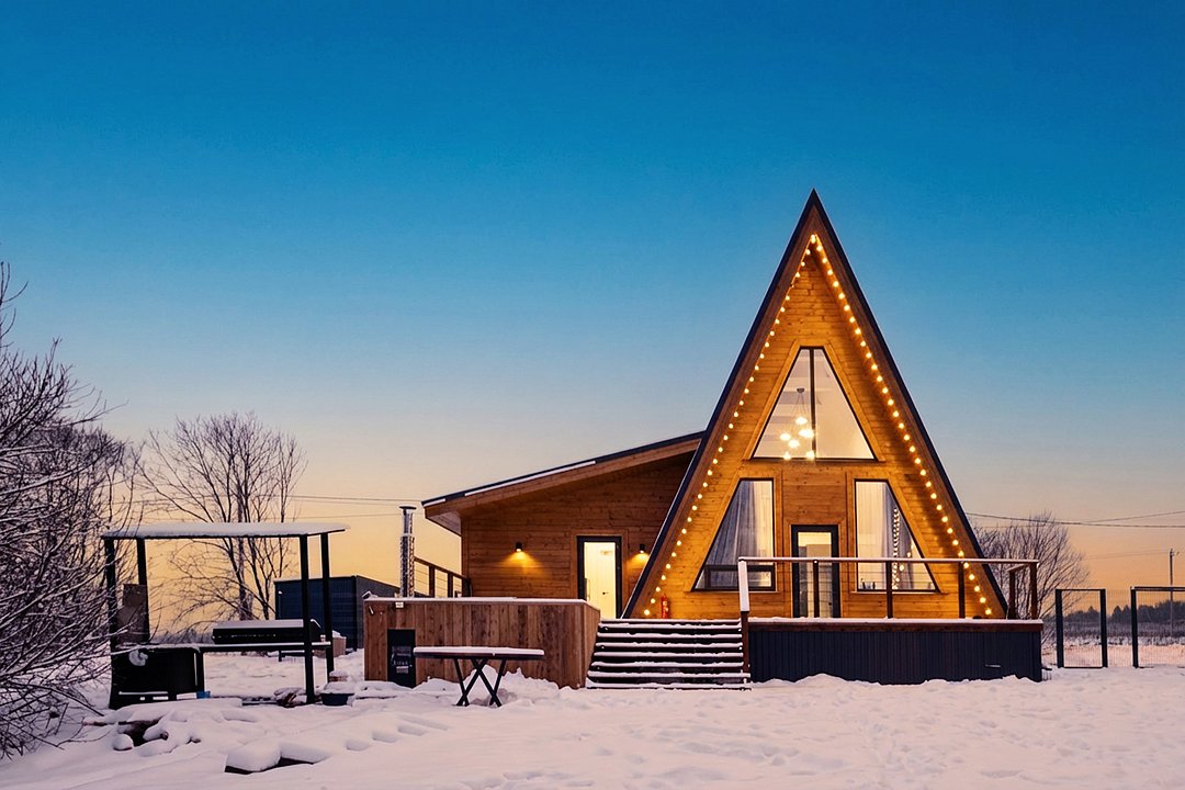 85 м2 · 6-и местный а-фрейм + 2 доп. места