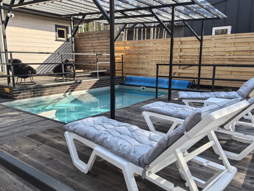 Читать полностьюНа свежем воздухе расположен подогреваемый бассейн, окруженный удобными шезлонгами, где можно насладиться отдыхом после купания. При бронировании бани посещение бассейна становится бесплатным, что позволяет гостям полностью расслабиться и насладиться водной стихией.