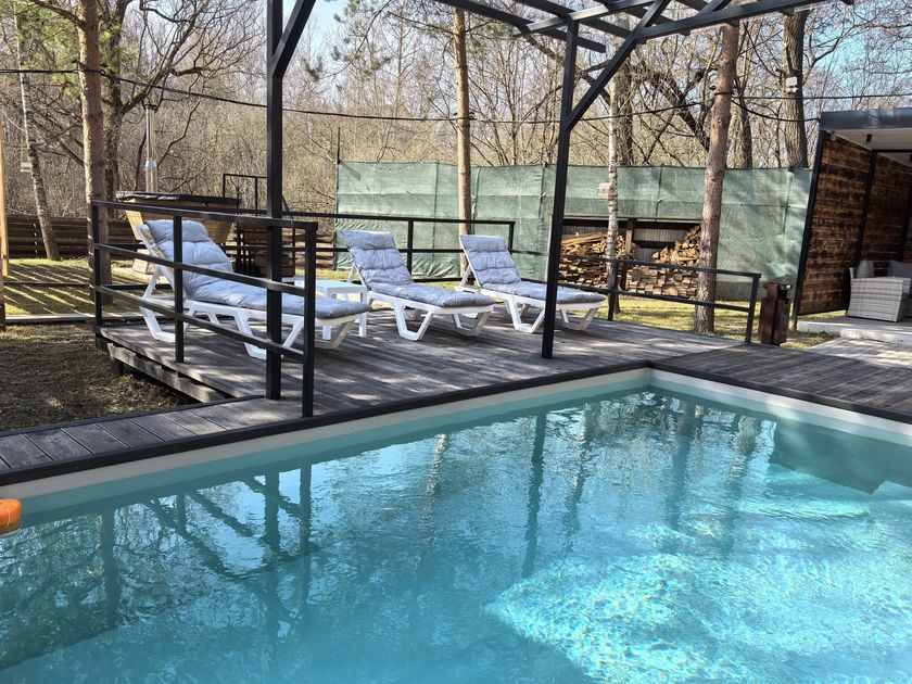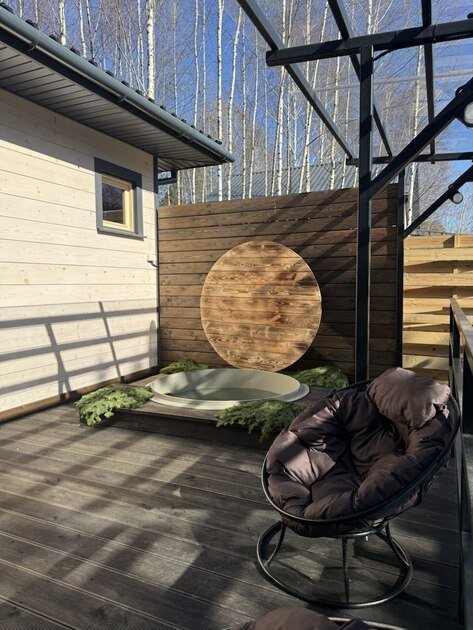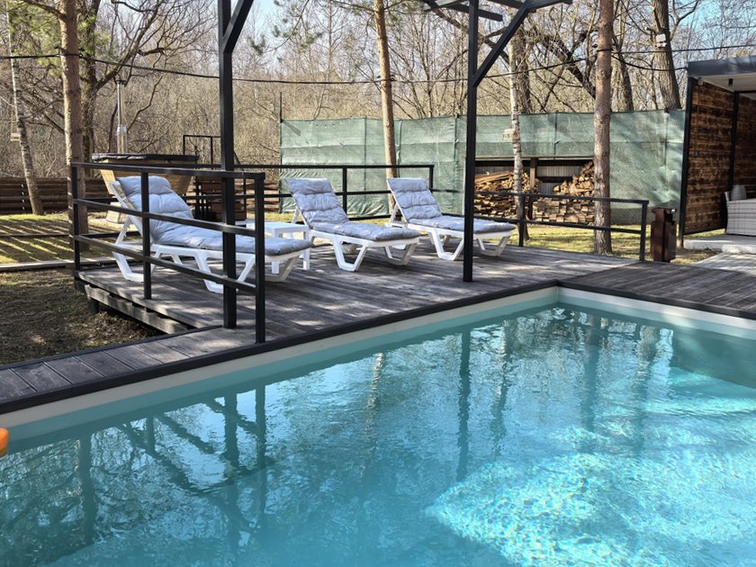 Рядом с бассейном: шезлонгиТемпература в бассейне: 30 °CНа свежем воздухе расположен подогреваемый бассейн, окруженный удобными шезлонгами, где можно насладиться отдыхом после купания. При бронировании бани посещение бассейна становится бесплатным, что позволяет гостям полностью расслабиться и насладиться водной стихией.