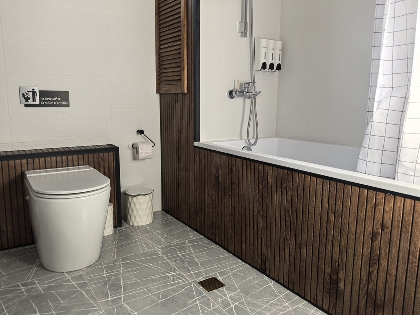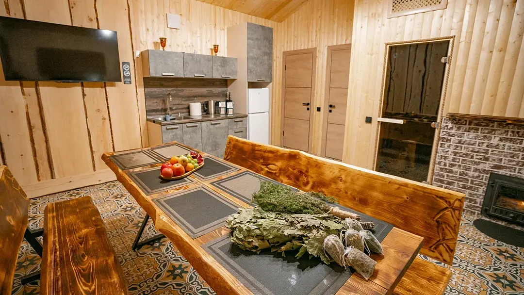 Время заезда с 15:00, время выезда до 12:00. Можно воспользоваться баней, чаном и бассейном за дополнительную плату. При бронировании от двух суток — два часа купания в теплом бассейне под открытым небом в подарок.