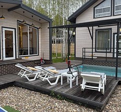 Время заезда с 17:00, время выезда до 14:00. Можно воспользоваться баней и бассейном за дополнительную плату. При бронировании от двух суток — два часа купания в теплом бассейне под открытым небом в подарок.