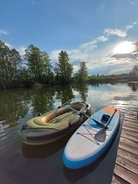 Вас ждёт красивая природа, свежий воздух и протекающая рядом река, на которой можно покататься на сап-бордах или порыбачить.