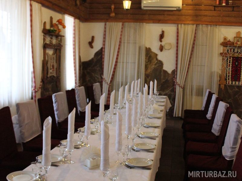 Ресторан с русской и сербской кухнями рассчитан на комфортное размещение 70 гостей. Проведение торжеств, свадеб, банкетов от 2000 рублей с человека.