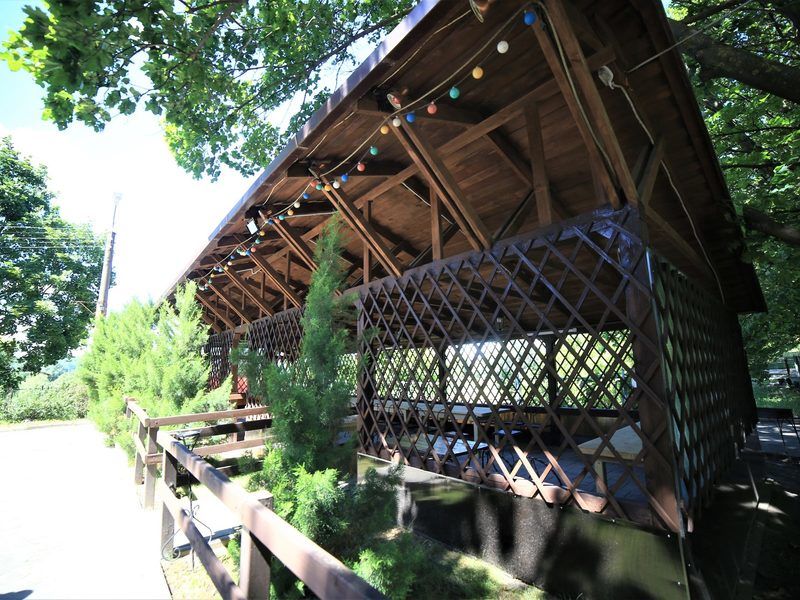 Мангальная зона + площадка для проведение выздной церемонии/ дискотеки/ разных форматов активностей/ фотозоны. В беседке есть свет и розетки. Свой выход к реке и волейбольной площадке.Цена указана за одного человека.
