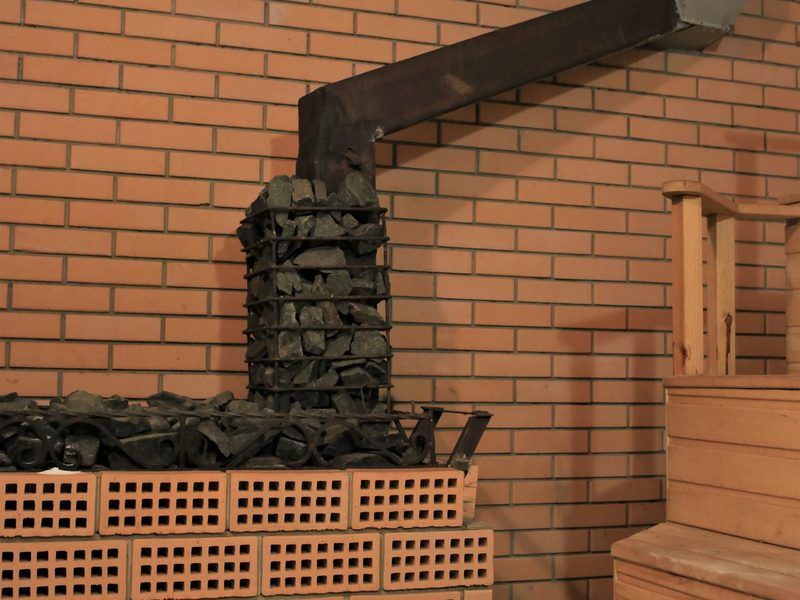 Именно такое парение считается полезным и правильным. Печь установлена под чаном. Так горячая вода поступает снизу вверх.Банный комплекс "ОХОТНИК"