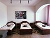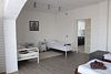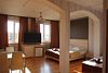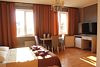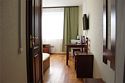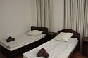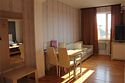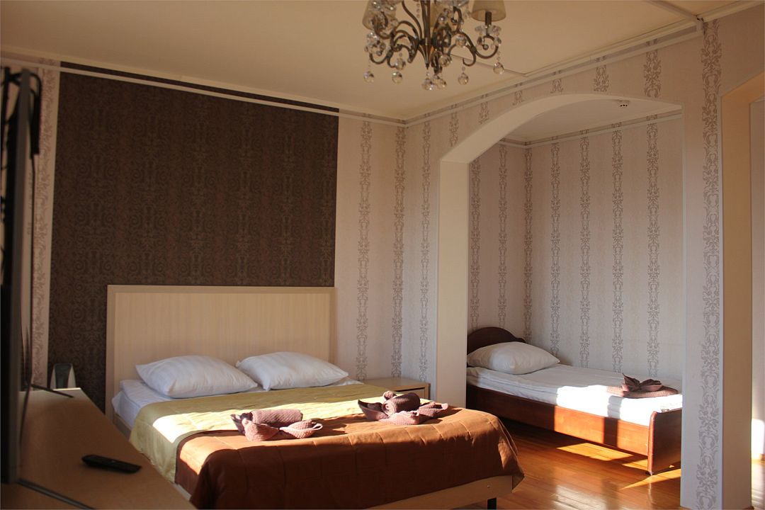 В номере имеется 2 комнаты. В одной комнате большая 2-х спальная кровать, во второй комнате 2 односпальные кровать.