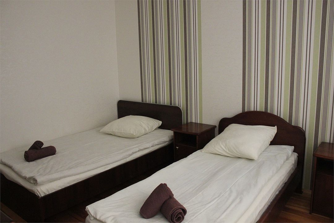 Две кровати: одна кровать — 1,4 м, вторая кровать односпальная — 90 см. Телевизор, холодильник, электрочайник, душевая кабина, водонагреватель, банные принадлежности, полотенца, обслуживание номеров.