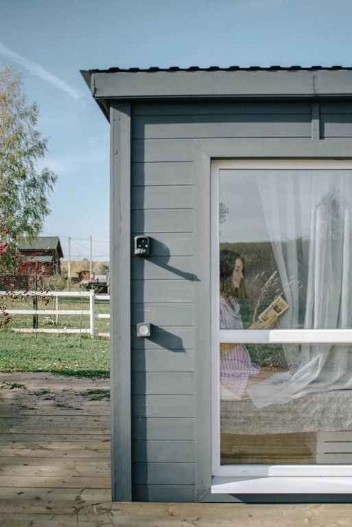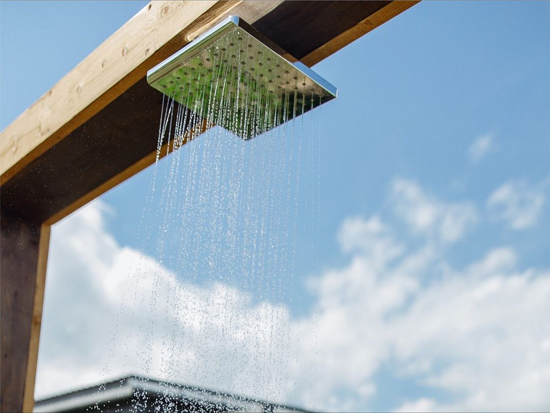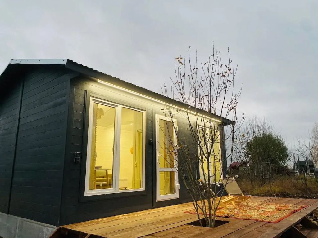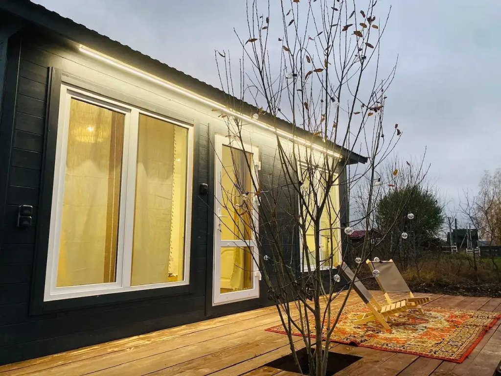 Баня с панорамным остеклением полностью соединяет с природой. Контрастный душ под открытым небом ярко усилит удовольствие от парения.