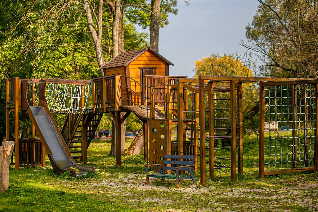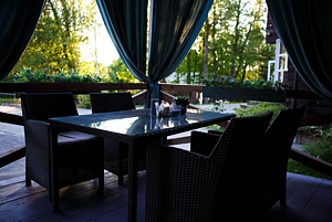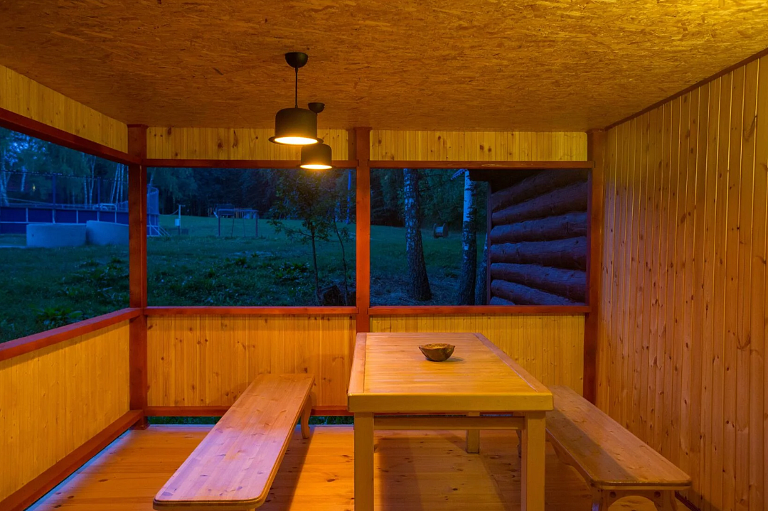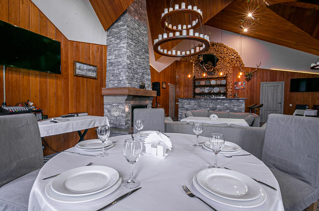 Широчайший размах в организации досуга: баскетбольная площадка, хоккейное и футбольное поле, теннисный корт, стрельба из арбалета, лука, а также из пневматического ружья по мишеням, катание на квадроциклах, гидроциклах, снегоходах, велосипедах, лошадях, зимняя и летняя рыбалка, пейнтбол, мангальные площадки, анимационная программа, зоопарк. На территории отеля работает ресторан, где подают блюда европейской и русской кухни по меню. На лесной опушке есть деревянная, русская баня с уютной комнатой отдыха, в ней можно насладиться ароматным чаем, а рядом можно пожарить мясо на мангале. Для детей предусмотрена игровая зона, где построены деревянные домики, качели и горка.