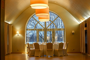 Стоимость аренды при заказе банкета — 50 000 ₽. Стоимость аренды без заказа банкета — 100 000 ₽. Минимальная сумма заказа по банкетному меню — 4500 ₽ на одного гостя.