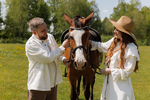- фотосессия на конюшне, с лошадьми и пони на территории и в леваде; свадебная фотосессия на конюшне — 5000 ₽/час.
