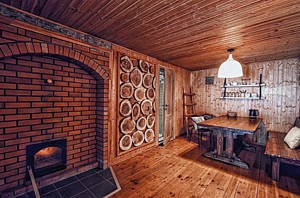 Русская баня на дровах по-белому для любителей «поддать парку». Что может быть лучше в зимнюю пору, чем баня? Пожалуй, только настоящая русская баня! Парилка на 8 человек, комната отдыха с посудой и чаем, ТВ, душевые, полотенца и халаты, веники и масла, доставка из ресторана.