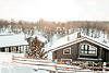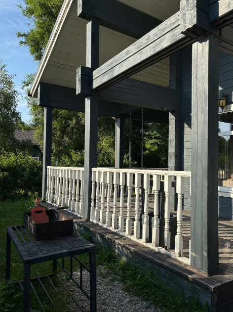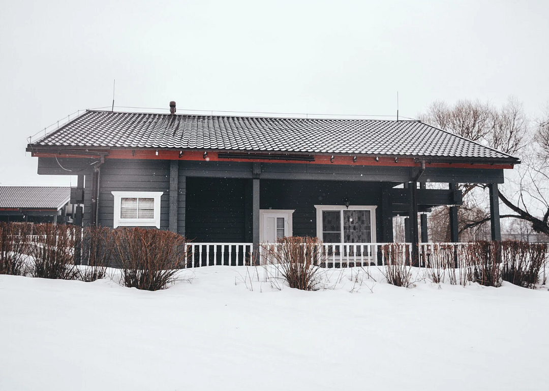 Двухэтажный трехкомнатный коттедж из профилированного бруса в финской деревне.