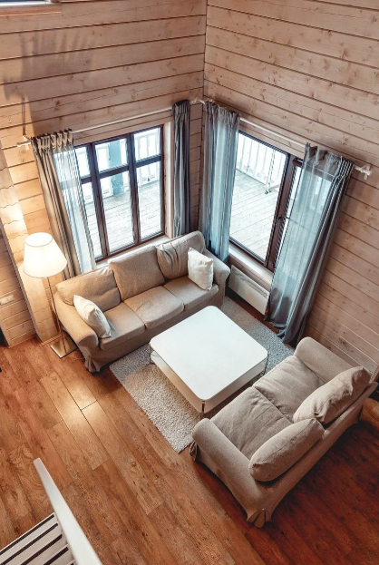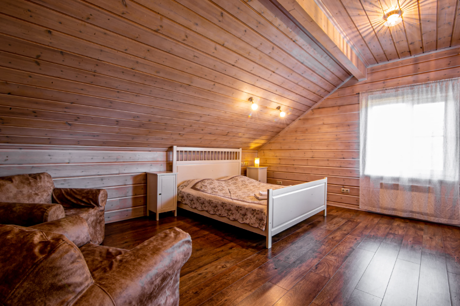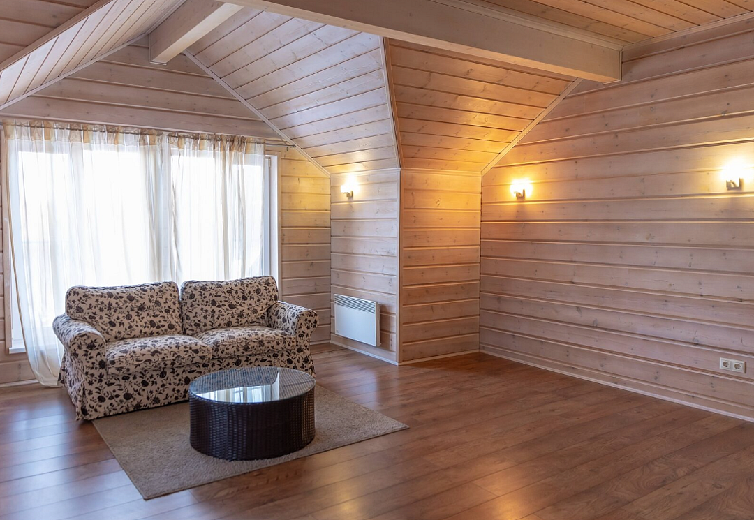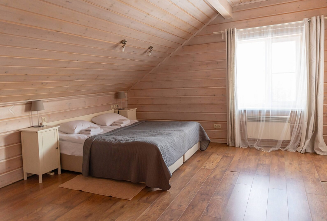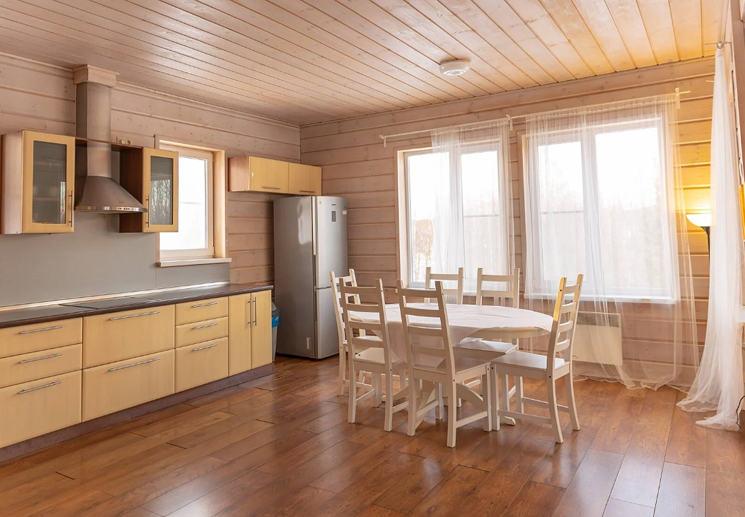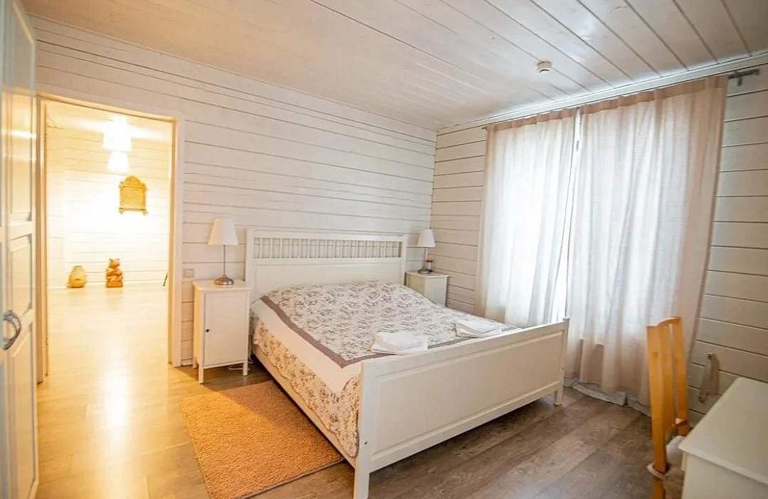 Трехкомнатный двухэтажный коттедж из профилированного бруса в финской деревне.