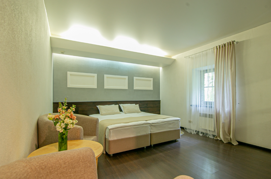 Просторный двухместный номер в Усадьбе Елизаветы Голицыной с одной двуспальной или двумя раздельными кроватями.