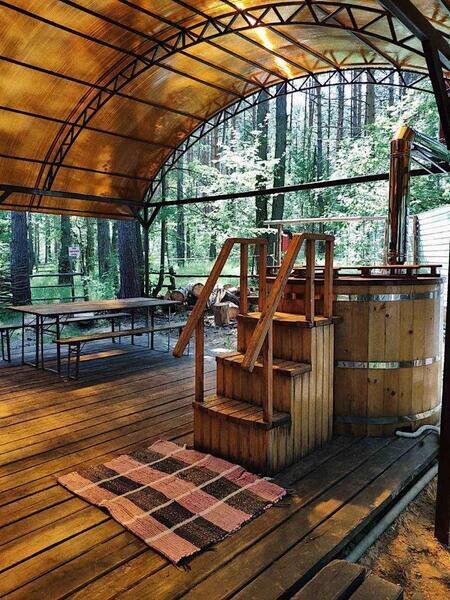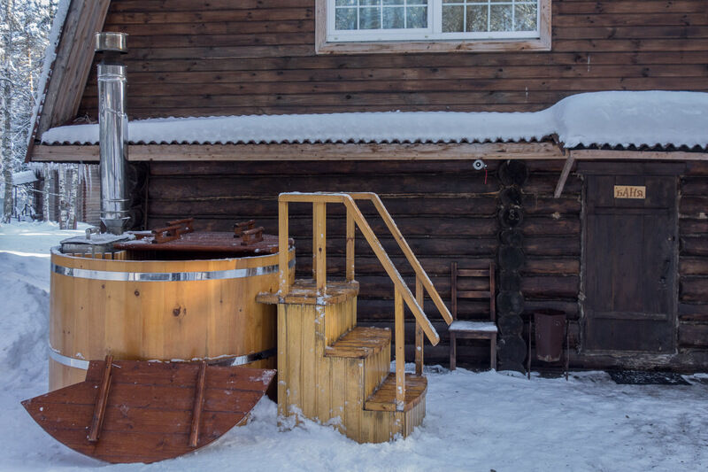 Японская баня — кедровая бочка «Фурако» с теплой водой.
