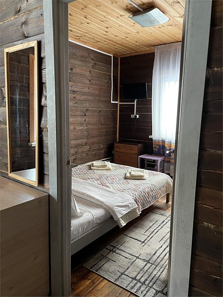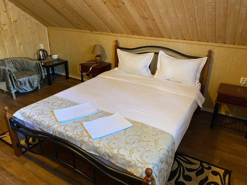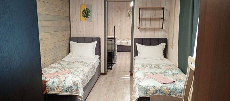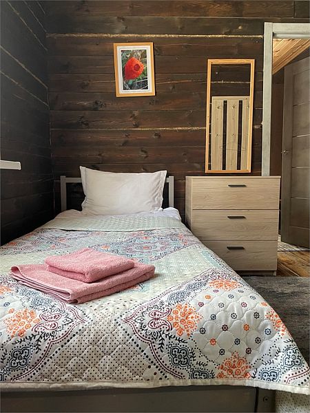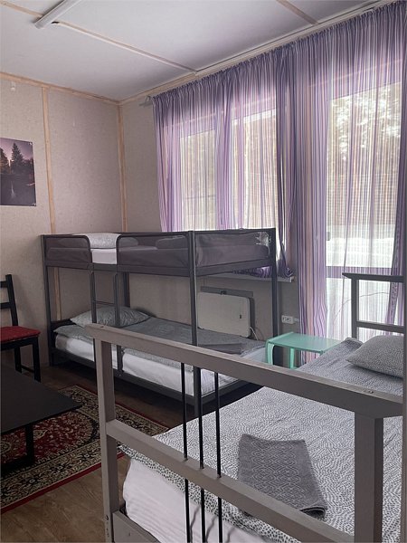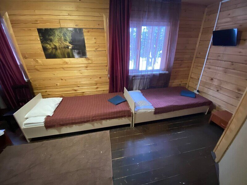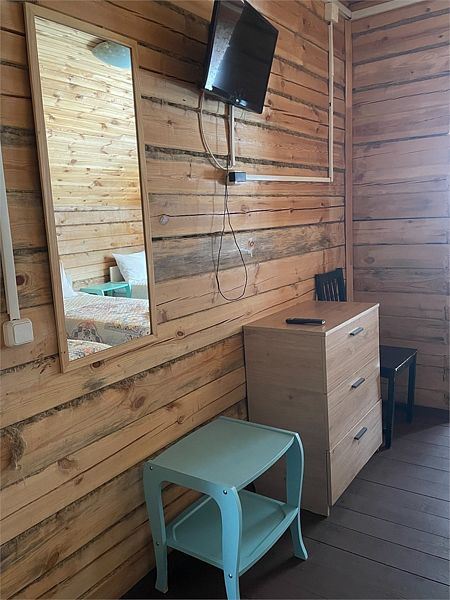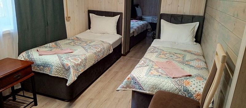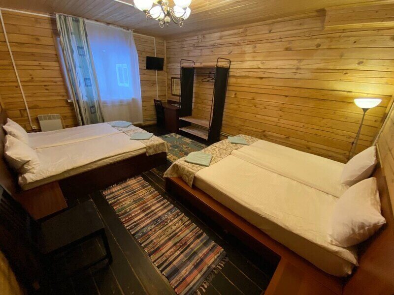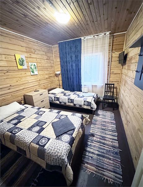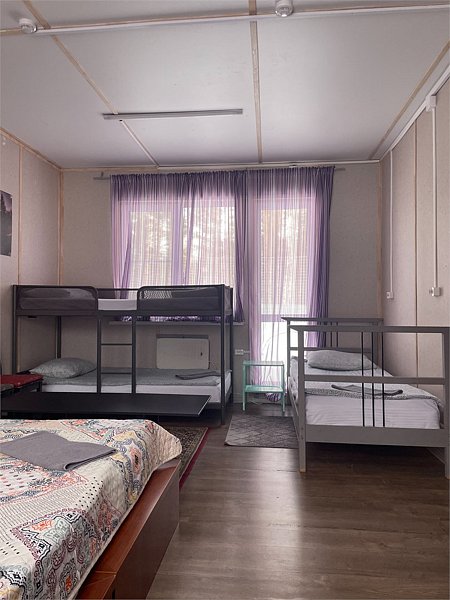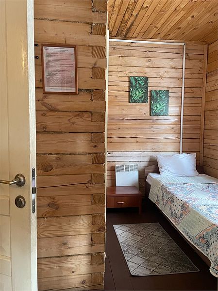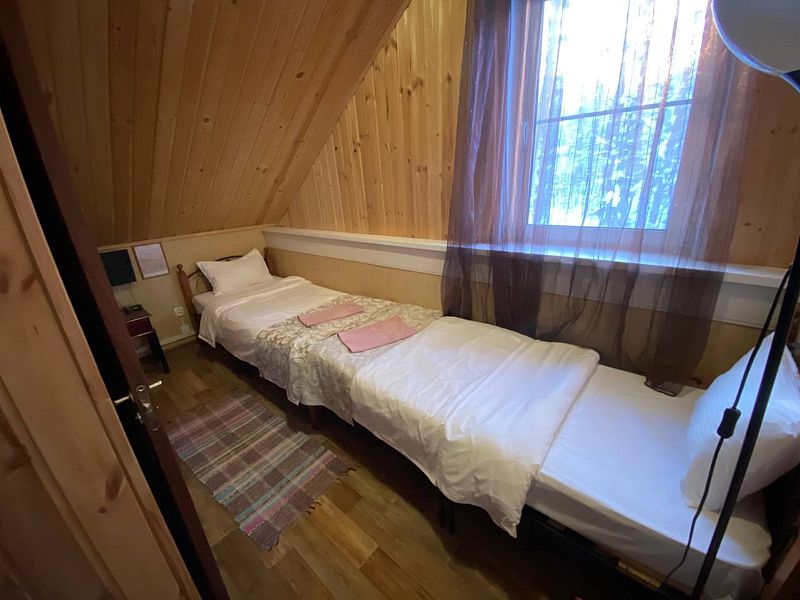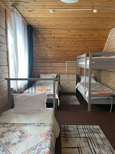 Стандартный номер с четырьмя односпальными или двумя односпальными и двухъярусной кроватями расположен в деревянном коттедже (из бруса), в котором всего 5 номеров: два номера на первом этаже и 3 номера на 2 этаже.