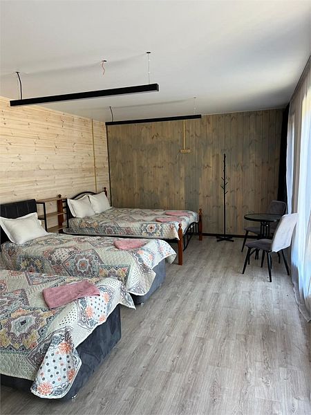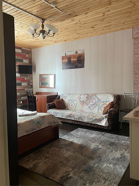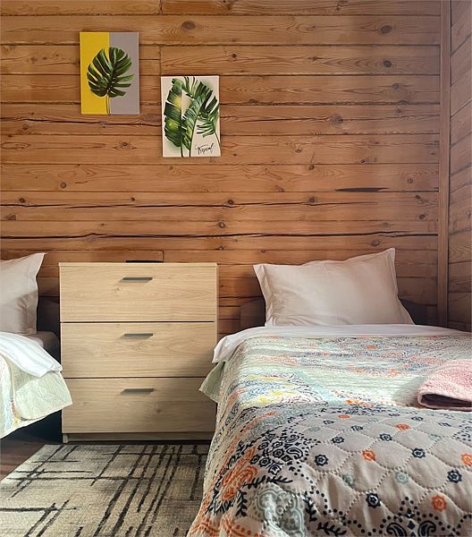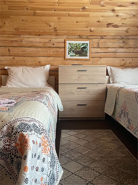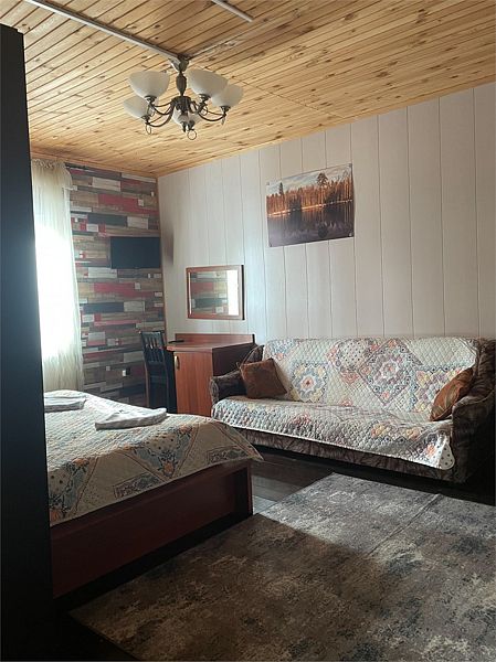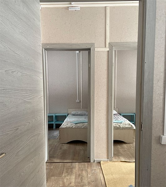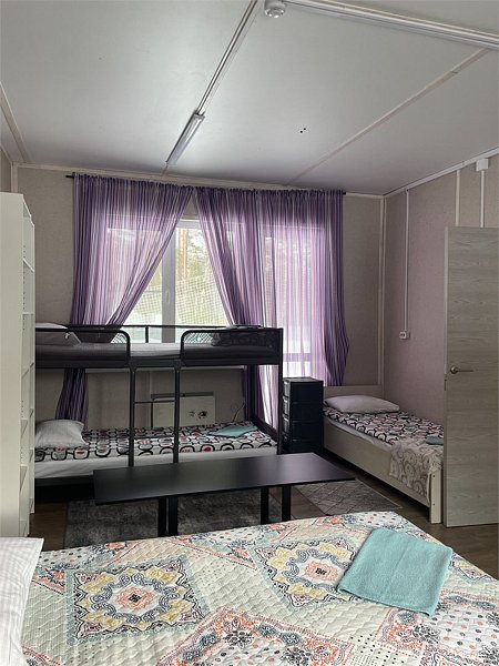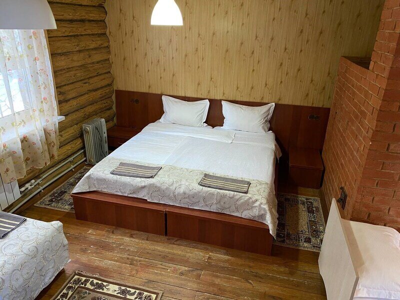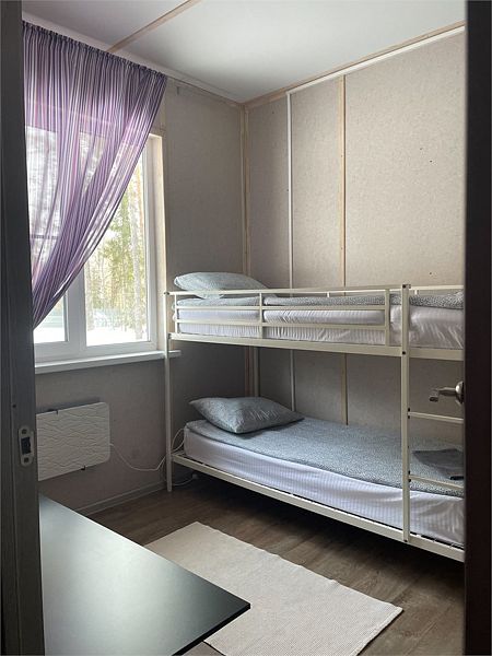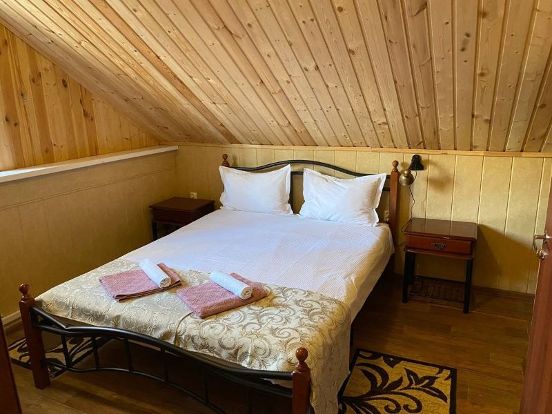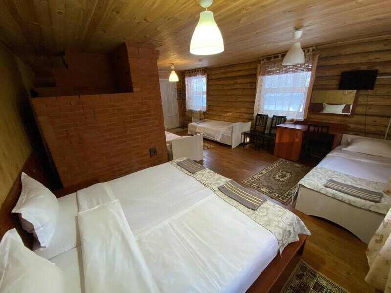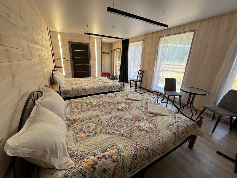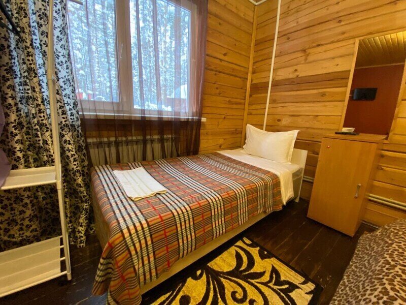 Стандартный номер с четырьмя односпальными или двумя односпальными и двухъярусной кроватями расположен в деревянном коттедже (из бруса), в котором всего 5 номеров: два номера на первом этаже и 3 номера на 2 этаже.
