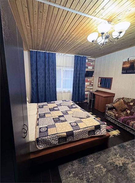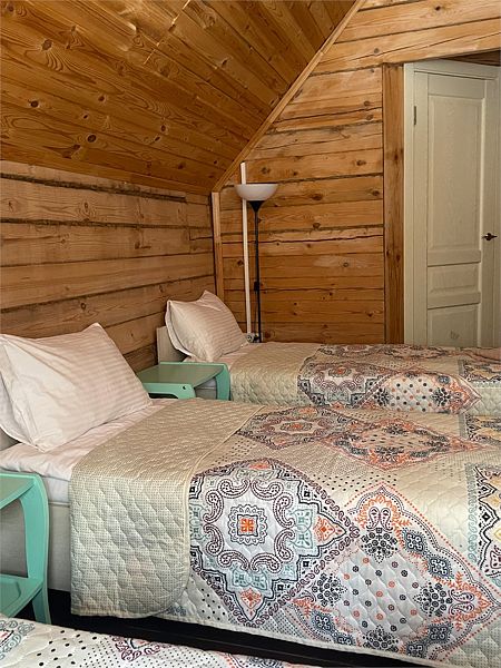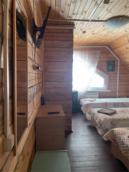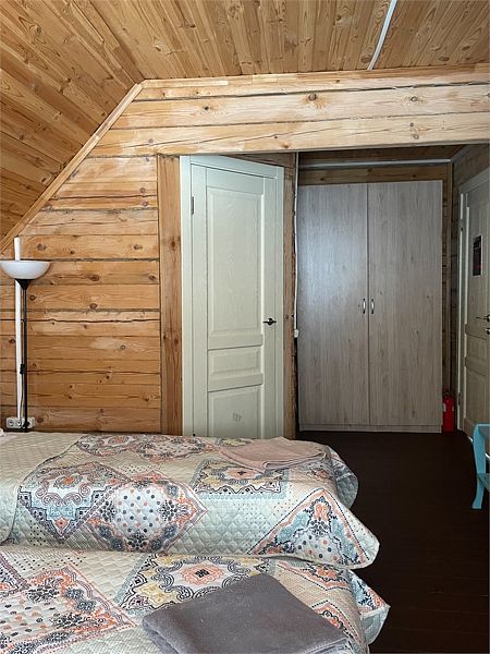 Третья часть дома из рубленного бревна с отдельным входом в двухэтажный номер. Отлично подойдет для отдыха с семьей или друзьями, 6 основных места и 1 дополнительно в двух спальнях на 2 человека и на 4 человека.