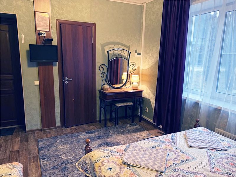 Номер оборудован туалетным столиком с зеркалом, прикроватными тумбами, стульями, шкафом для одежды с вешалками. В распоряжении гостей есть чайный набор (чай/кофе), электрический чайник. Ванная комната с душевой кабиной/ванной укомплектована банными полотенцами. Дополнительно гость может приобрести тапочки и косметические средства. Два номера такого типа расположены на 1 этаже коттеджа «Особняк» и один номер на третьем этаже.