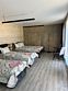 Современный номер с двуспальной и односпальной кроватями и удобными матрасами.