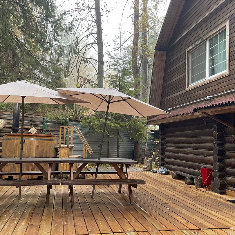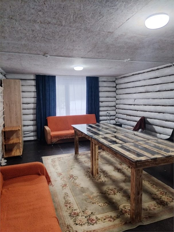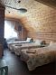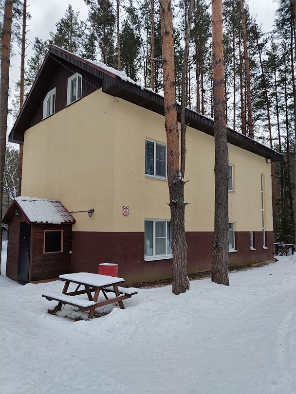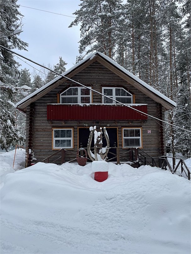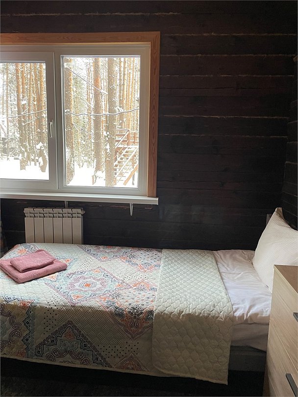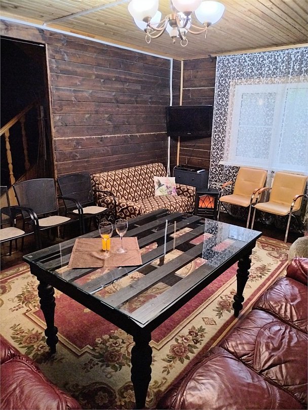 Идеально подходит для вашей компании именно этот домик из рубленного бревна, в два этажа. На втором этаже две спальни, одна спальня на 4 человека (две полуторки и одна двухярусная кровать) и одна спальня на 6 человек (все полутороспальные кровати). На первом этаже холл и общая гостевая комната с удобными столами для игр и диванами. Санузлы и душевые расположены на каждом этаже. В домике есть дровяная действующая печь, что придает особый колорит. Рядом с домиком беседка барбекю.Услуги и удобства
