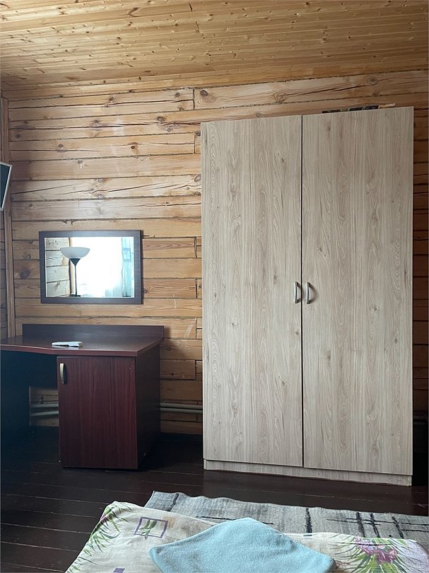 Стандартный номер с тремя односпальными кроватями расположен в деревянном коттедже (из бруса), в котором всего 5 номеров: два номера на первом этаже и 3 номера на 2 этаже. Номер оборудован зеркалом, комодом, вешалкой для вещей, телевизором с плоским экраном и кабельным ТВ. Ванная комната с душевой кабиной укомплектована банными полотенцами. На первом этаже коттеджа есть холодильник и электрический чайник. Дополнительно гость может приобрести тапочки и косметические средства.Услуги и удобства