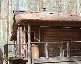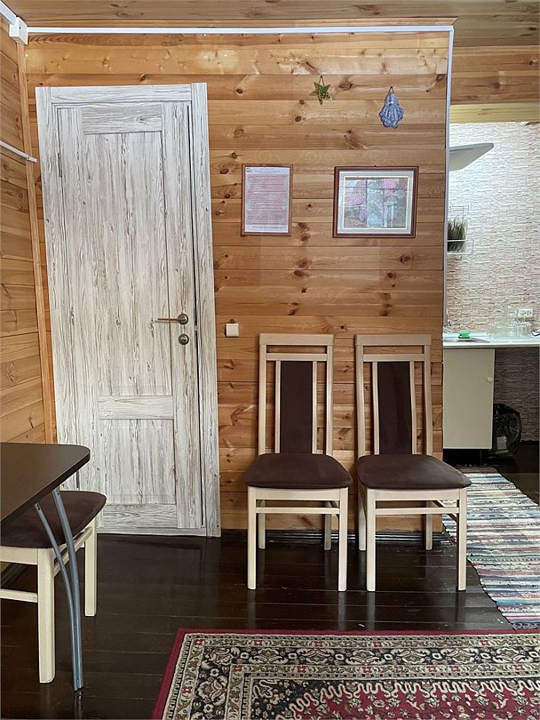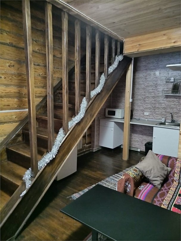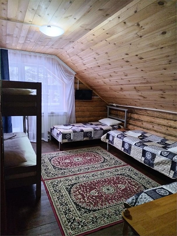 Двухэтажный номер - апартаменты с отдельным входом в доме из рубленного бревна "Русская Изба" И на первом и на втором этаже - санузлы с душевой кабиной. Первый этаж имеет небольшую кухонную зону с холодильником, СВЧ печью, чайником и посудой. Отлично подойдет для отдыха с семьей или друзьями, 7 основных мест. Можно добавить дополнительные места (по запросу) На втором этаже – две спальни с балконом. Одна комната с 3 односпальными и одной двухъярусной кроватями. Вторая - с двумя односпальными кроватями. Совмещенный санузел с душевой кабиной, жидкое мыло, набор полотенец. По запросу предоставляется: - гладильная доска и утюг, фен для волос; - тапочки и косметические принадлежности можно приобрести за дополнительную оплату. Домашний питомец за дополнительную плату может проживать с вами.Услуги и удобства