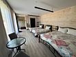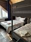 Современный двухкомнатный номер с двумя двуспальными кроватями и удобными матрасами. Номер оборудован туалетным столиком с зеркалом, прикроватными тумбами, стульями, шкафом для одежды с вешалками. В распоряжении гостей есть чайный набор (чай/кофе), электрический чайник. Ванная комната с душевой кабиной/ванной укомплектована банными полотенцами. Дополнительно гость может приобрести тапочки и косметические средства. Номер расположен на 3 этаже корпуса "Особняк" в котором 7 номеров. 2 номера на 1 этаже, 2 номера на 2 этаже и 3 номера на 3 этаже (мансардный). На первом этаже корпуса есть холодильник и микроволновая печь.Услуги и удобства