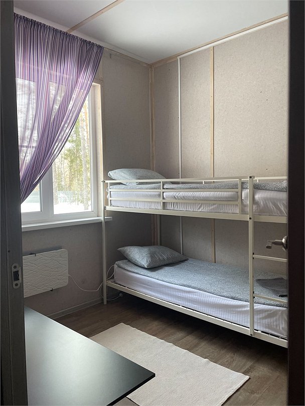 холодильник, светильник, настольные лампы, микроволновая печь, душевая кабина, санузел, две полутораспальные кровати, тумбы, стулья, шкаф для одежды, зеркало, двухъярусные кровати, кухонная утварь, вид на стадион, телевизор с плоским экраном, мини-кухня, вид на лес, можно с питомцамиВ номере