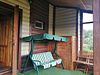 Через открытую веранду с востока — вид на сад и цветники. Северная дверь «Тироля» тоже выходит к деревьям, винограду и декоративной зелени. С западной стороны находится настоящий русский теремок.