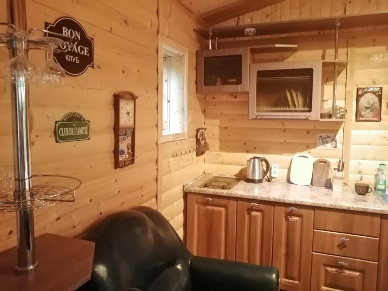 На первом этаже — сауна, русская печь, кухня, гардеробная комната и санузел. На втором — уютная спальня, а также фантастически красивые виды из окна на окружающую природу, восходящее солнце, просыпающийся и засыпающий Воронеж.