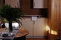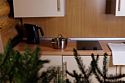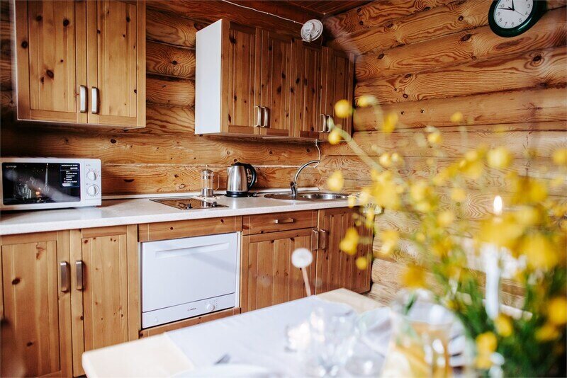 Оборудованная кухня: холодильник, варочная поверхность, микроволновая печь, электрический чайник, комплект посуды на каждого гостя, столовые приборы, комплект посуды для приготовления.