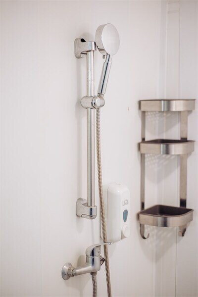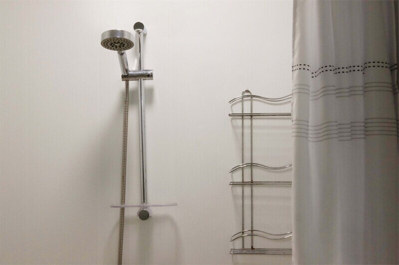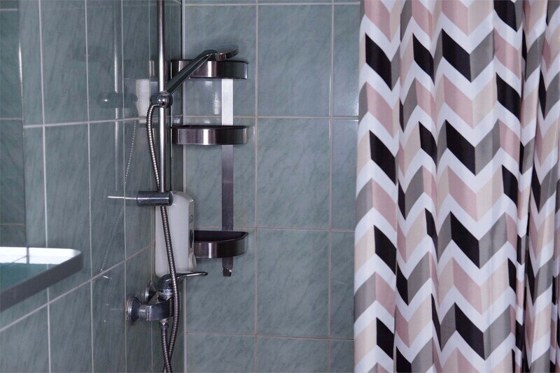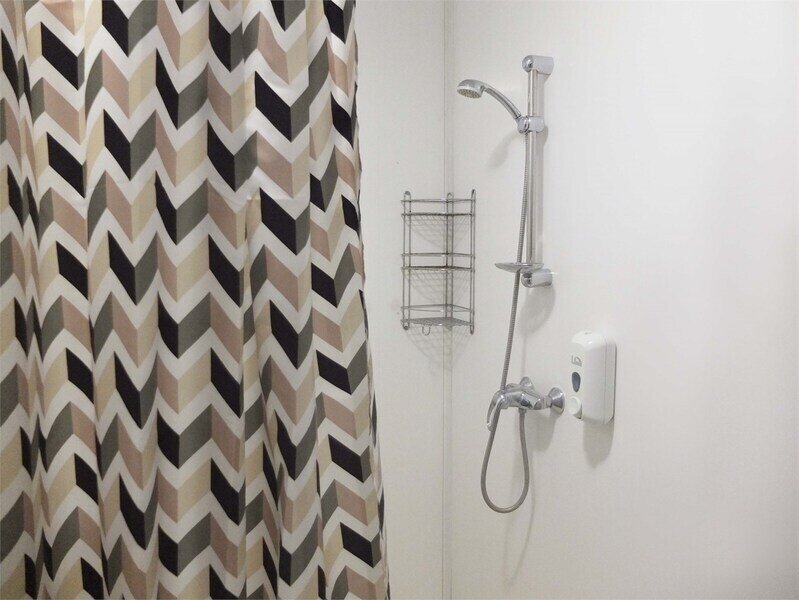 Санузел с душевой. Косметические принадлежности. Фен, полотенца, тапочки.