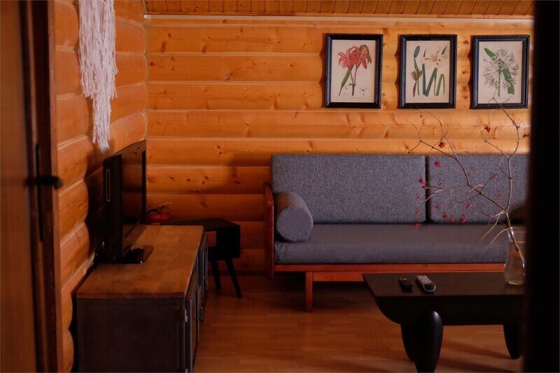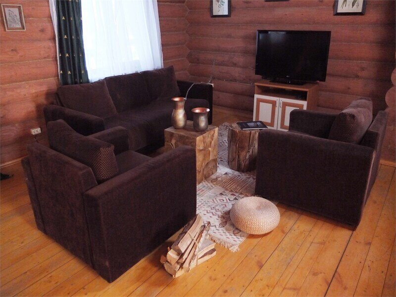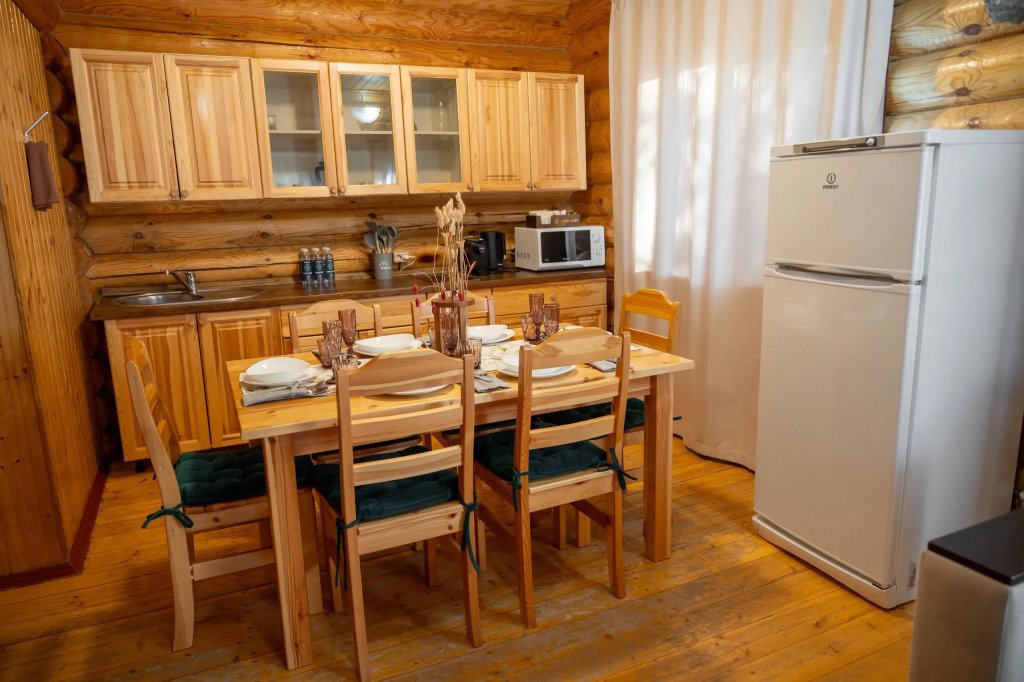 Комплектация коттеджа: 2 спальни, просторная гостиная, идеально подходящая для семейных торжеств и дружеских вечеринок, большой обеденный стол, телевизор.