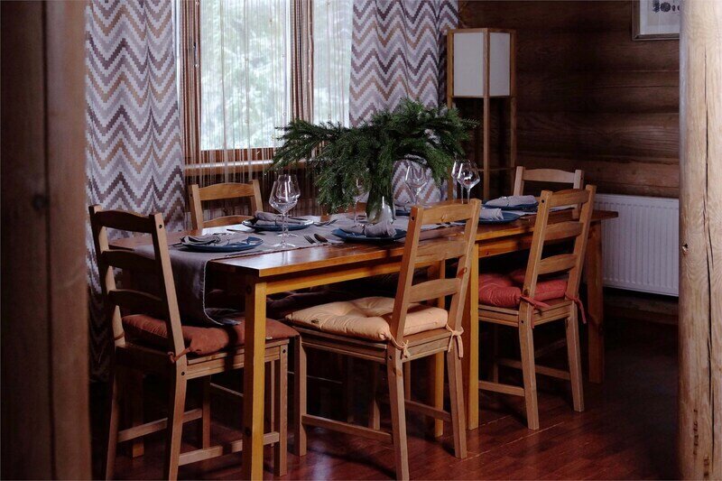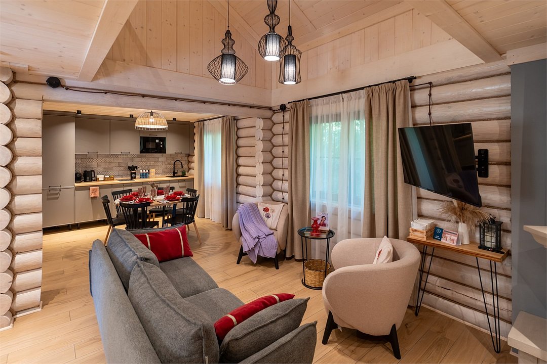Комплектация коттеджа: 3 спальни, просторная гостиная с камином, идеально подходящая для семейных торжеств и дружеских вечеринок, сплит система, Smart-телевизор, большой обеденный стол.