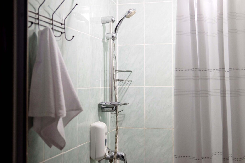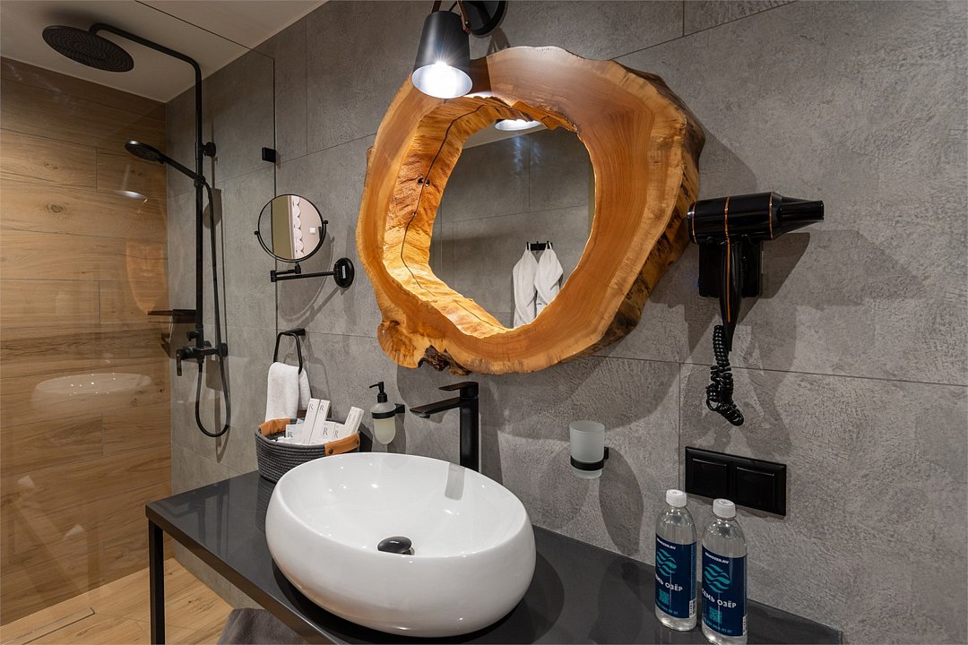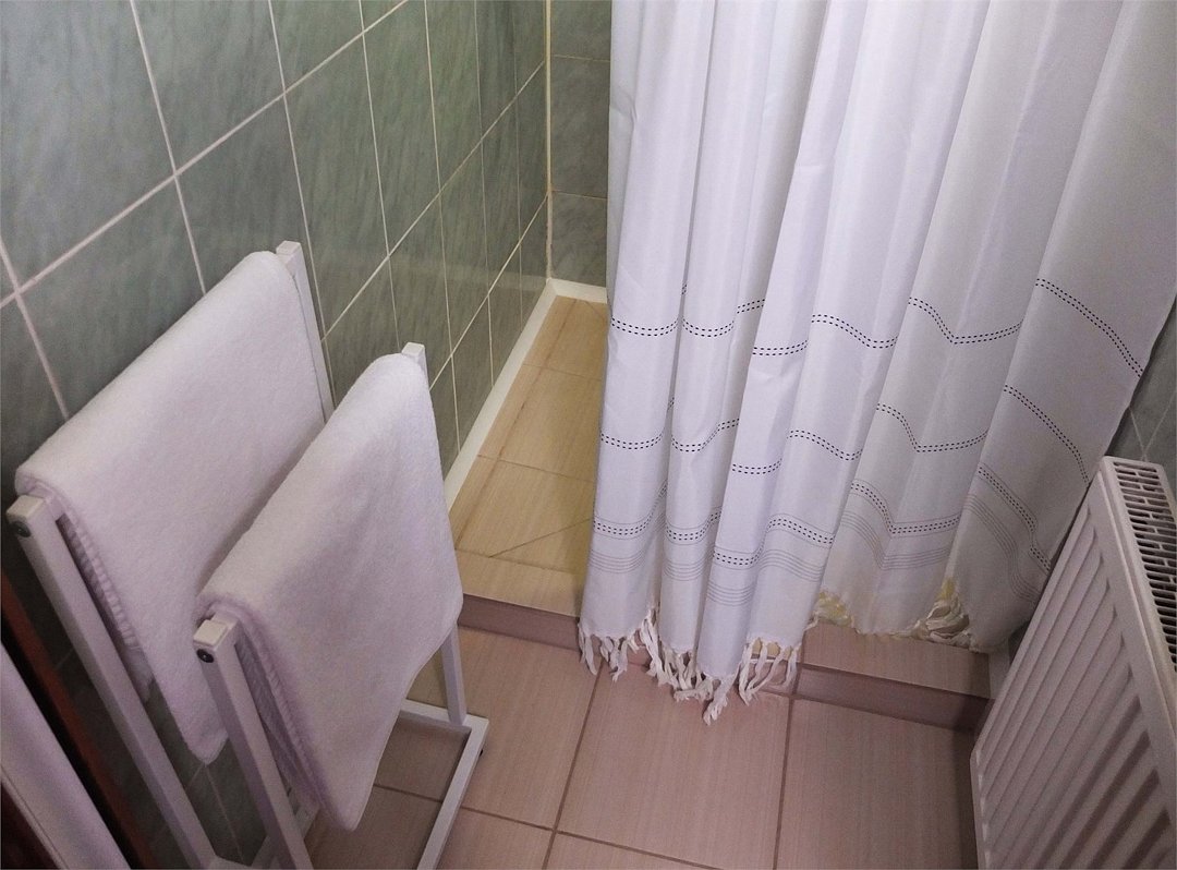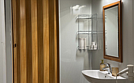 Санузел с душевой. Косметические принадлежности. Фен, полотенца, тапочки, халаты.
