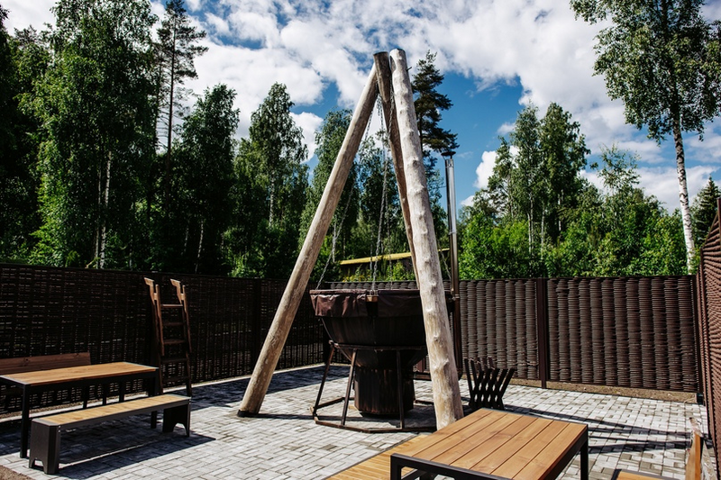 У каждого коттеджа своя беседка с освещением и мангал.