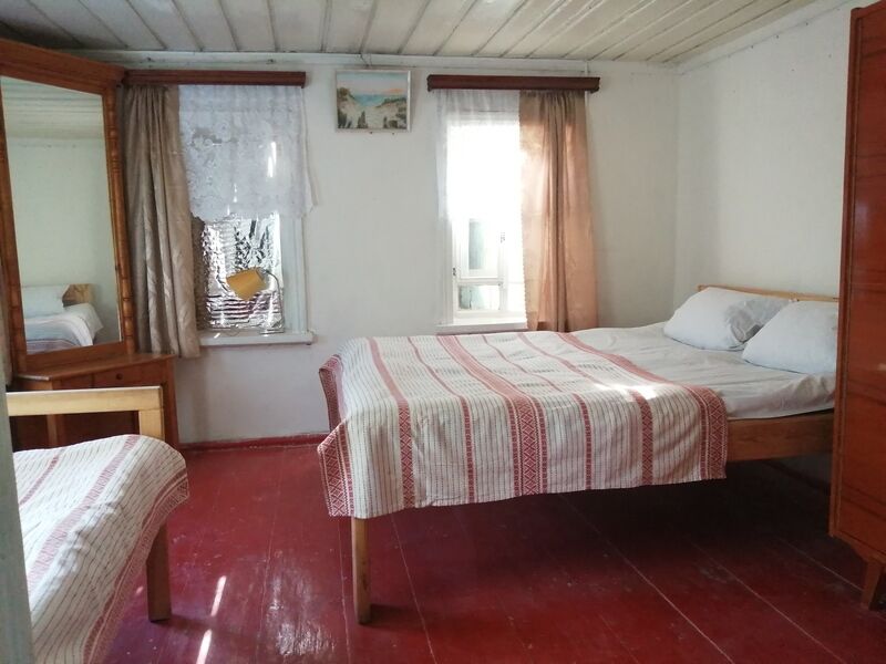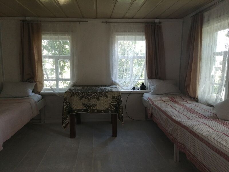 Гостевой домик включает в себя оборудованную кухню (холодильник, плита, посуда), умывальник и две комнаты на 3 и 4 спальных места с возможностью установки одного дополнительного спального места в любой из комнат. Туалет и душ расположены на территории.