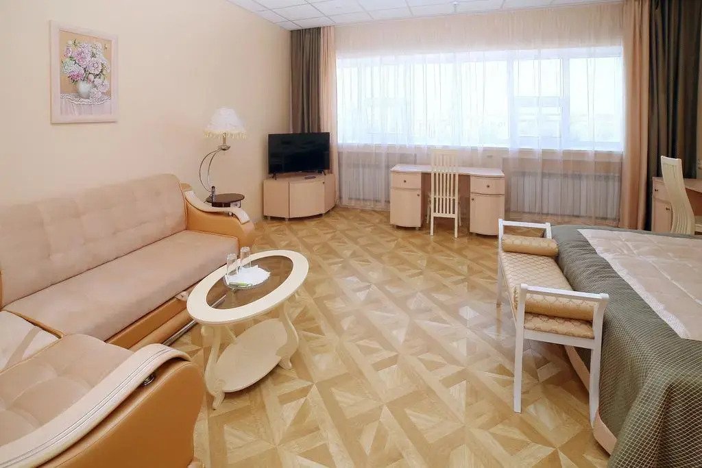 Номер уютно обставлен и оснащён необходимым, чтобы отдохнуть после долгого и насыщенного дня. Имеются телевизор. Перечисленные услуги есть не во всех номерах.