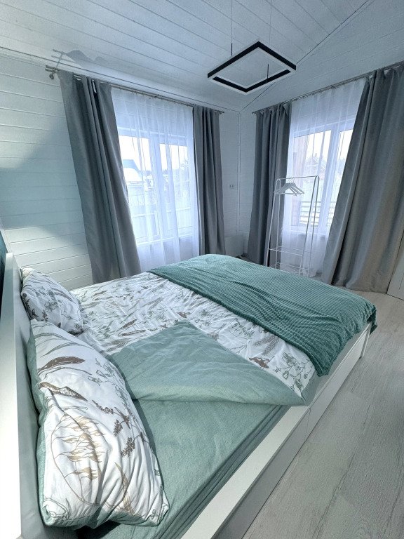 Частный дoм 100 кв.м с тeppacoй, на участке 7.5 соток, рассчитан на 6 гocтeй. К услугам гостей детская площадка, волейбольная площадка.